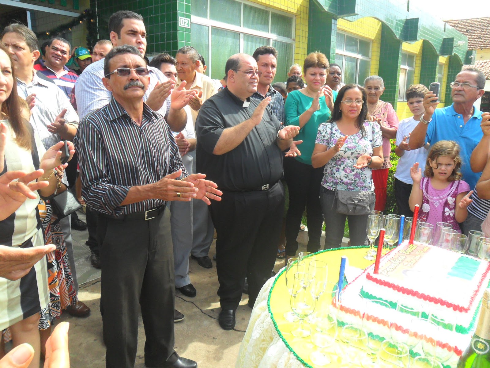 Padre Ney, que já foi nosso Pároco durante muitos anos e hoje presta serviços na paróquia de Mata Roma, esteve presente no hasteamento das bandeiras, execução dos hinos do Brasil e de Buriti, onde se seguiu com o corte do bolo e brinde.